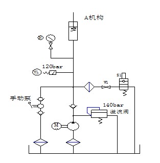 5) 测试系统减压补压功能,当系统在减压的情况下应在减压到2Mpa压力继电器自动动作启动M补压到所需压力值自动关闭M。